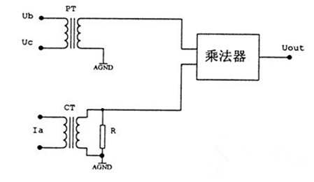 這類變送器雖然應(yīng)用較少,但是它是三相有功/無功功率變送器的基礎(chǔ),因此先介紹它的基本原理,它的基本電路如下: