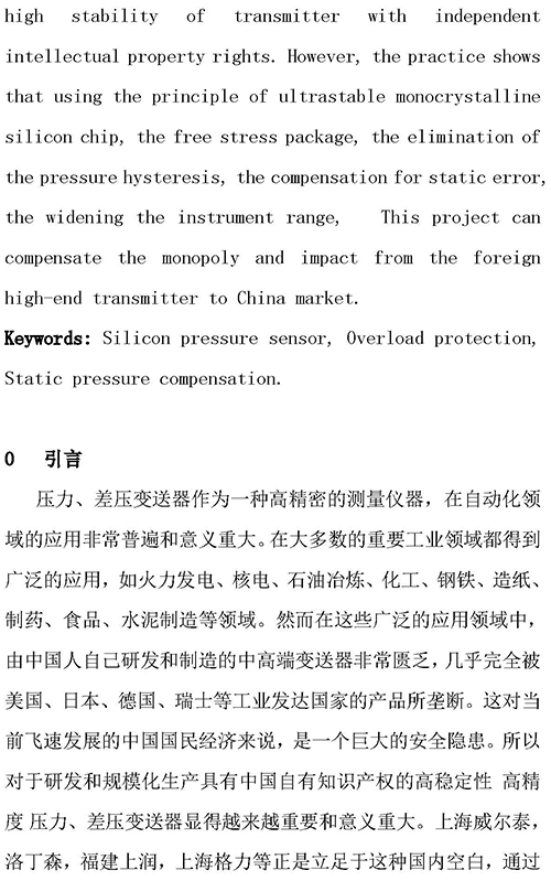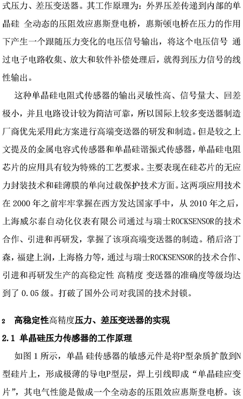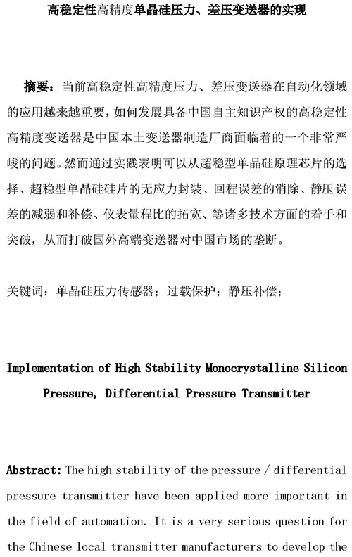 高穩(wěn)定高精度單晶硅性壓力差壓變送器的實現(xiàn)