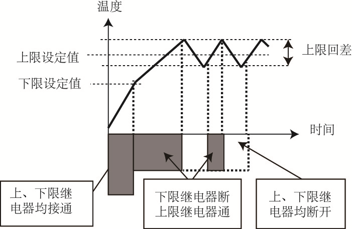三位式調(diào)節(jié)還可用于回差可調(diào)的寬中間帶調(diào)節(jié)方式,其回差約等于上限設(shè)定值與下限設(shè)定值之差值,在制冷控制系統(tǒng)中應(yīng)用較多。