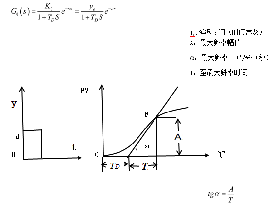 這是一種開環(huán)整定方法,即利用系統(tǒng)廣義過程的階躍響應(yīng)特性曲線對調(diào)節(jié)器參數(shù)進(jìn)行整定。具體做法是:先使系統(tǒng)處于開環(huán)狀態(tài)。在執(zhí)行單元輸入端施加一個(gè)階躍信號(hào),這個(gè)階躍信號(hào)的幅度以不影響系統(tǒng)的安全運(yùn)行限制。記錄下過程量的變化值。根據(jù)這個(gè)階躍響應(yīng)曲線將廣義被控過程的傳遞函數(shù)近似表示如下: