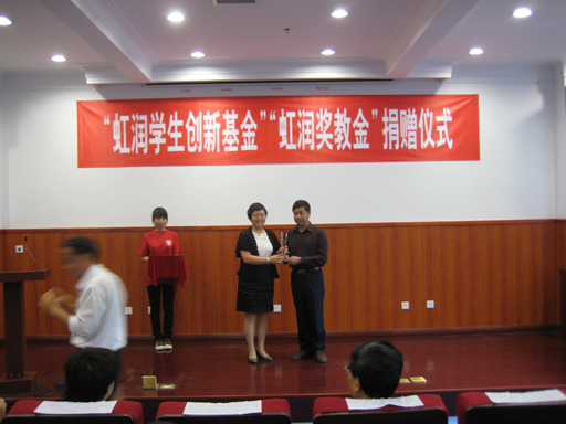 2012年10月27日是上海理工大學慶祝建校106周年的日子。在這喜慶的日子里,公司董事長林善平作為上海理工大學校友應邀參加了上海理工大學106周年校慶。林董在傾情資助家鄉(xiāng)貧困學生的同時,對曾經(jīng)教育培養(yǎng)過自己的上海理工大學一往情深,決定捐款50萬元,在母校建立“虹潤學生創(chuàng)新基金”和“虹潤獎教金”,用于鼓勵上理工刻苦學習、勤于鉆研,敢于創(chuàng)新的上理工學生和忠誠黨的教育事業(yè)的上理工教師。10月26日下午,“虹潤學生創(chuàng)新基金”和“虹潤獎教金”捐贈儀式在上理工“格致堂”舉行。會上林董向校方代表遞交了50萬元支票(樣張)。林董的善舉感動了上海理工大學光電學院師生,光電學院潘淑平處長向林董頒發(fā)了捐贈證書。