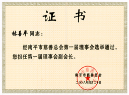 公司董事長當(dāng)選為南平市慈善總會副會長 公司向南平市慈善總會捐資三十萬元