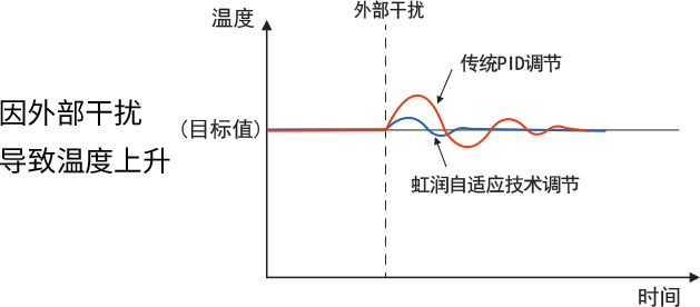 虹潤自適應(yīng)技術(shù)自動抑制常規(guī)干擾引起的溫度波動,針對開關(guān)艙室門時(shí)外部空氣的流入等可預(yù)測的溫度波動,穩(wěn)定地進(jìn)行自動控制。提高品質(zhì),縮短溫度變化穩(wěn)定所需的時(shí)間,且將溫度波動控制在較小限度,為提高生產(chǎn)能力做出貢獻(xiàn)。