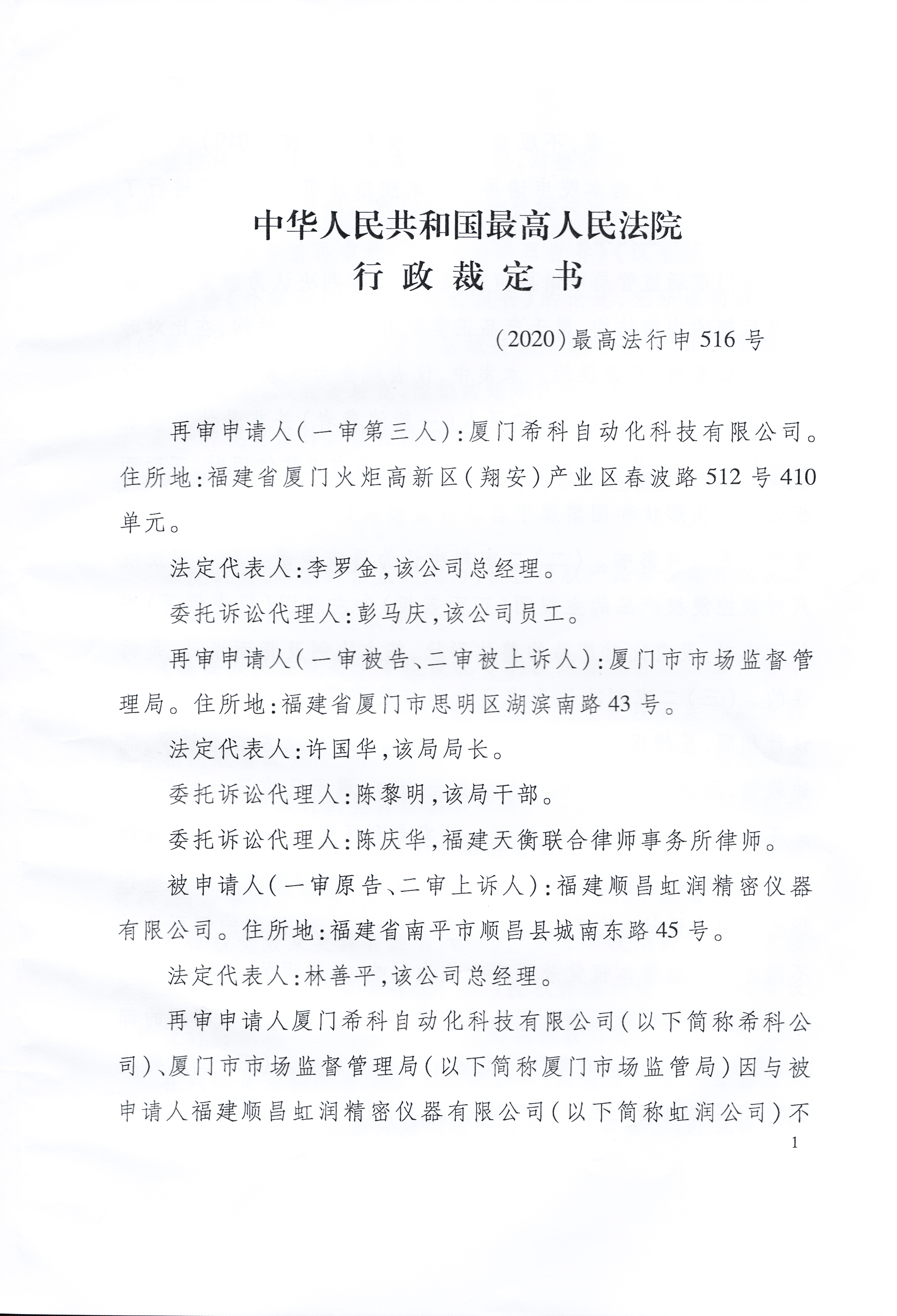 該案于2019年7月30日由福建省高級(jí)人民法院終審判定廈門希科公司侵犯虹潤公司專利權(quán)。??乒静环?019年10月31日又向最高人民法院提出再審,最高人民法院在經(jīng)過長期的嚴(yán)格調(diào)查審理后,于近期最終判定廈門??乒厩謾?quán)并駁回其上訴請求。