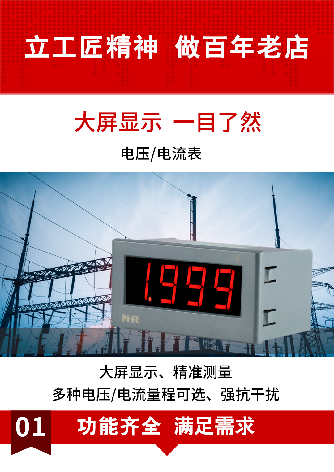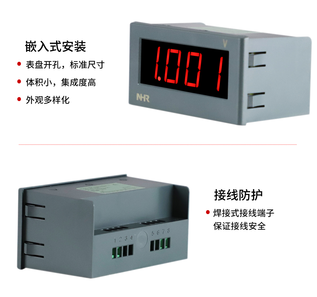 NHR-D300系列電壓/電流表是一種小體積的經(jīng)濟型數(shù)字式電測儀表,主要用于對電氣線路中的交直流電壓或交直流電流進行實時測量,并用LED數(shù)碼管以數(shù)字直讀方式進行顯示。產(chǎn)品具有穩(wěn)定性好,抗干擾性強,性價比高等優(yōu)點,且產(chǎn)品體積小,可直接替代原有指針式儀表。廣泛應用于穩(wěn)壓器、點焊機、校驗臺等電氣設備或系統(tǒng)中。