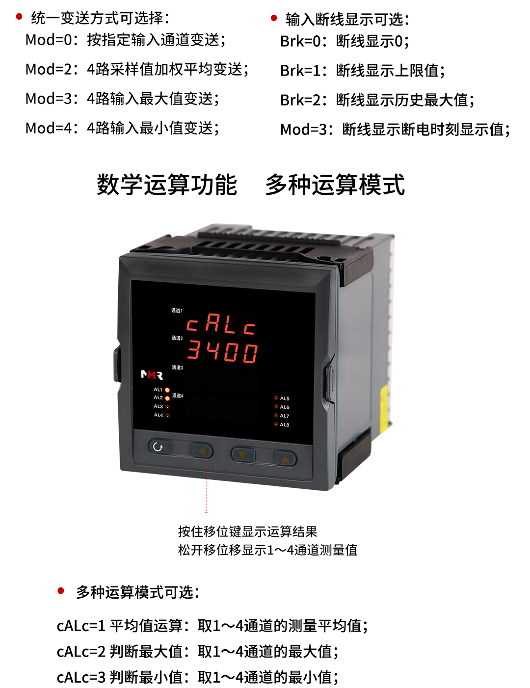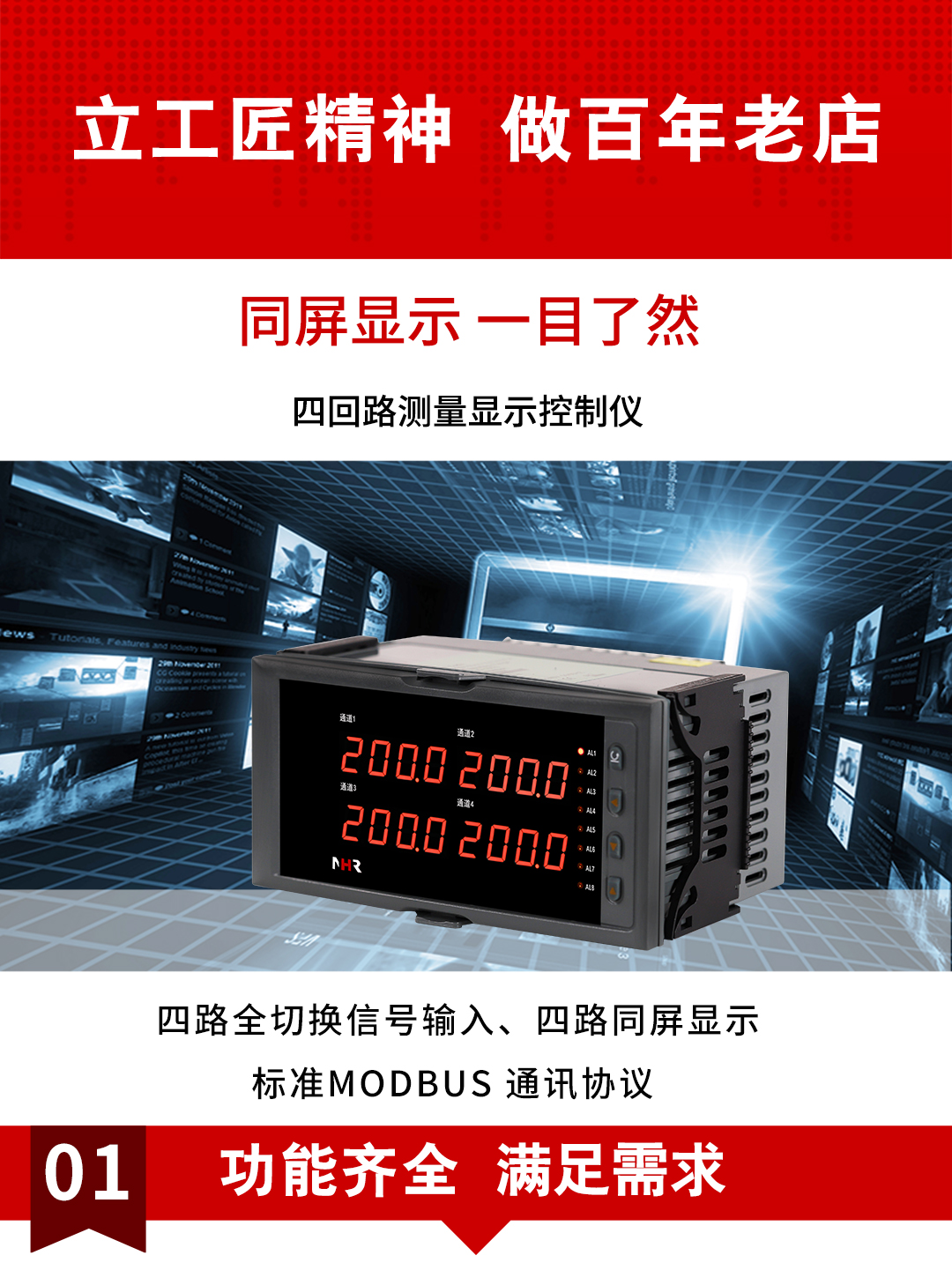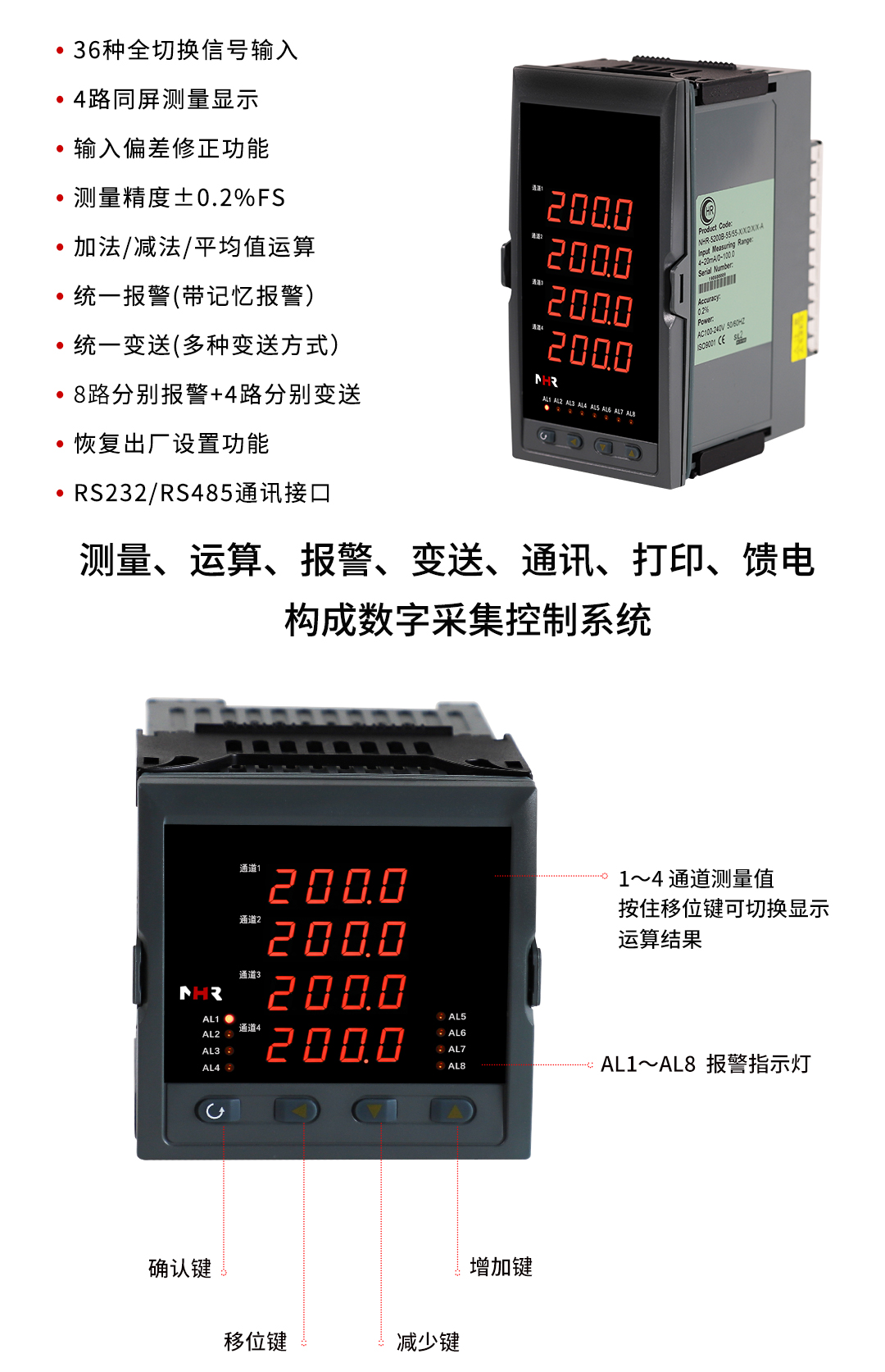 NHR-5740系列四回路測量顯示控制儀針對現場溫度、壓力、液位、速度等各種信號進行采集、顯示、控制、遠傳、通訊、 打印等處理,構成數字采集系統(tǒng)及控制系統(tǒng)。