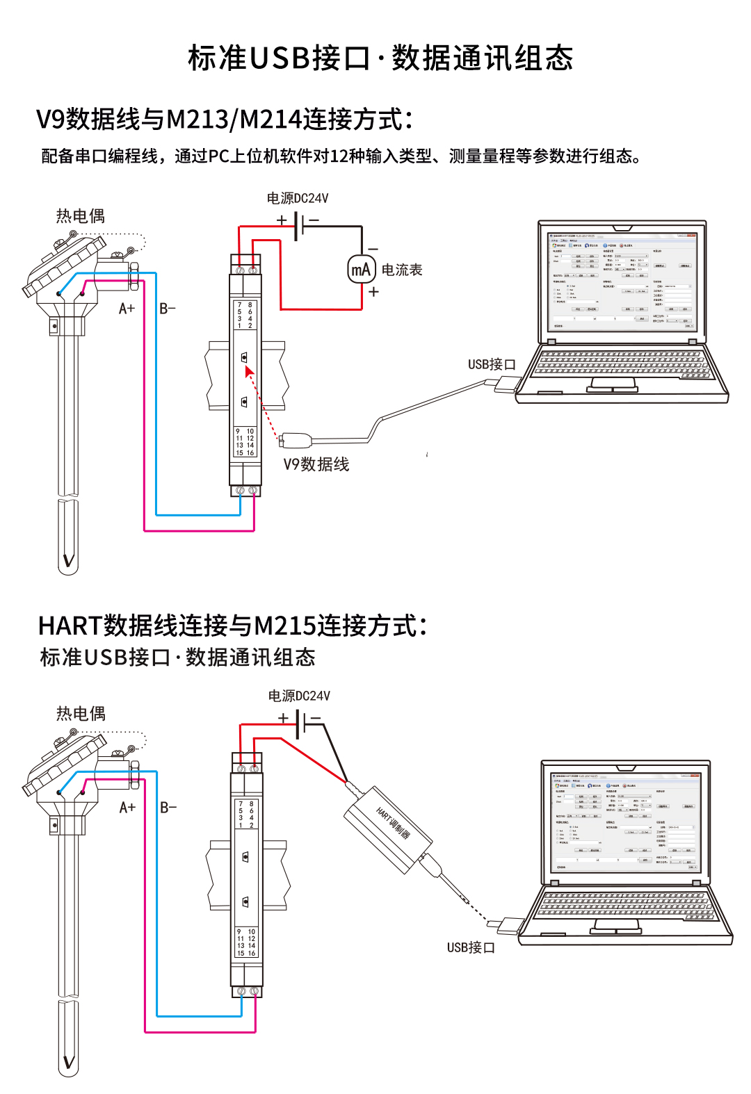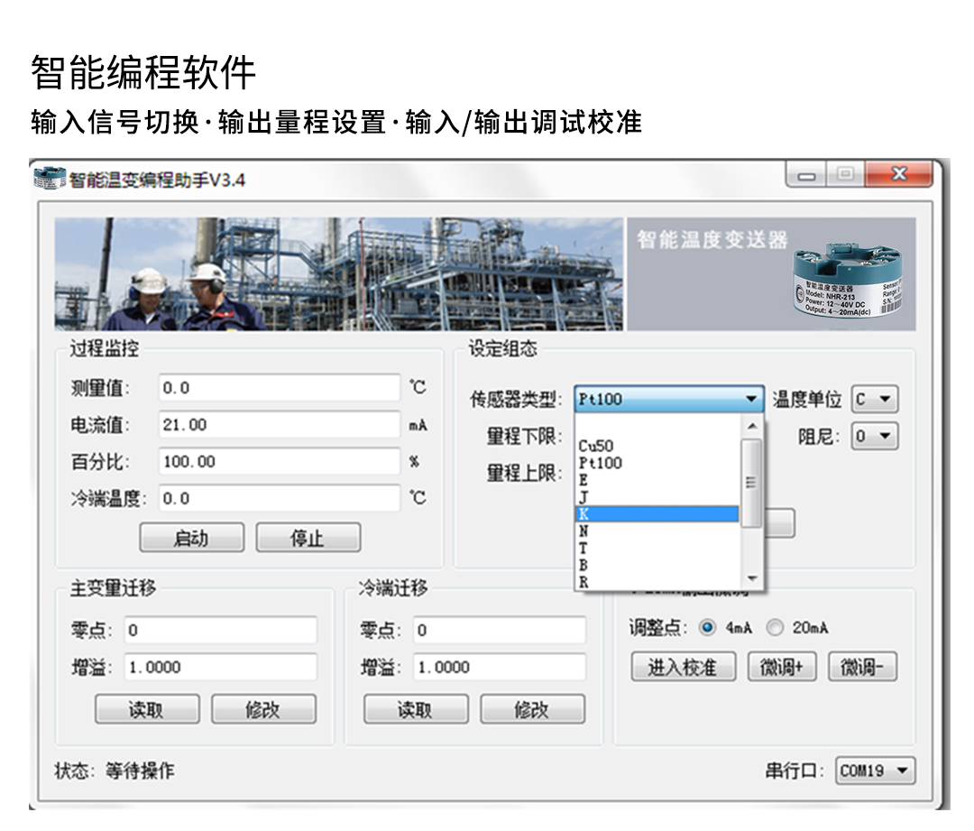 回路供電溫度變送器分為M213智能溫度變送器、M214隔離智能溫度變送器、M215 HART智能溫度變送器,變送器將現(xiàn)場(chǎng)的熱電阻或熱電偶信號(hào)經(jīng)過(guò)隔離放大處理,轉(zhuǎn)換為與溫度成線性的二線制4-20mA(HART)信號(hào)輸出至控制系統(tǒng)。