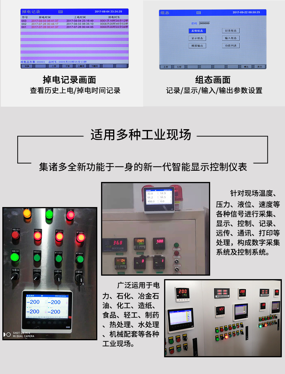 OHR-F800系列彩色無(wú)紙記錄儀采用新型大規(guī)模集成電路,對(duì)輸入、輸出、電源、信號(hào)采取可靠保護(hù)和強(qiáng)抗干擾設(shè)計(jì)。機(jī)身短節(jié)約空間,深度僅為76mm。12路萬(wàn)能信號(hào)輸入,可帶12路報(bào)警輸出,6個(gè)變送輸出,RS485通訊接口,以太網(wǎng)接口,微型打印機(jī)接口和USB接口,SD卡插座。