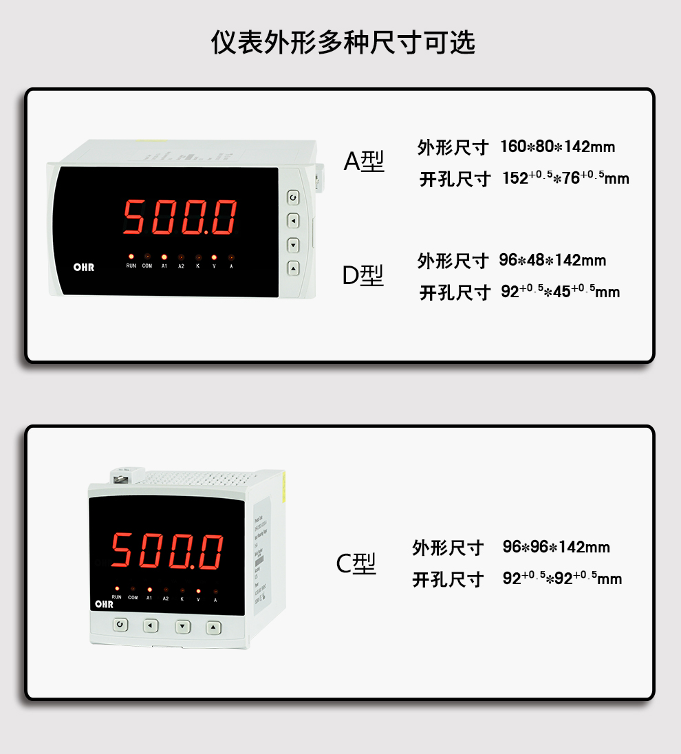 OHR-C200系列交流電壓/電流表為新 一代可編程智能儀表,它采用大規(guī)模集成電路,應(yīng)用數(shù)字采樣技術(shù),對單相電氣線路中的電壓、電流進(jìn)行實(shí)時(shí)測量、顯示和控制,并通過RS485接口或模擬量變送輸出接口對被測量電量數(shù)據(jù)進(jìn)行遠(yuǎn)傳。
