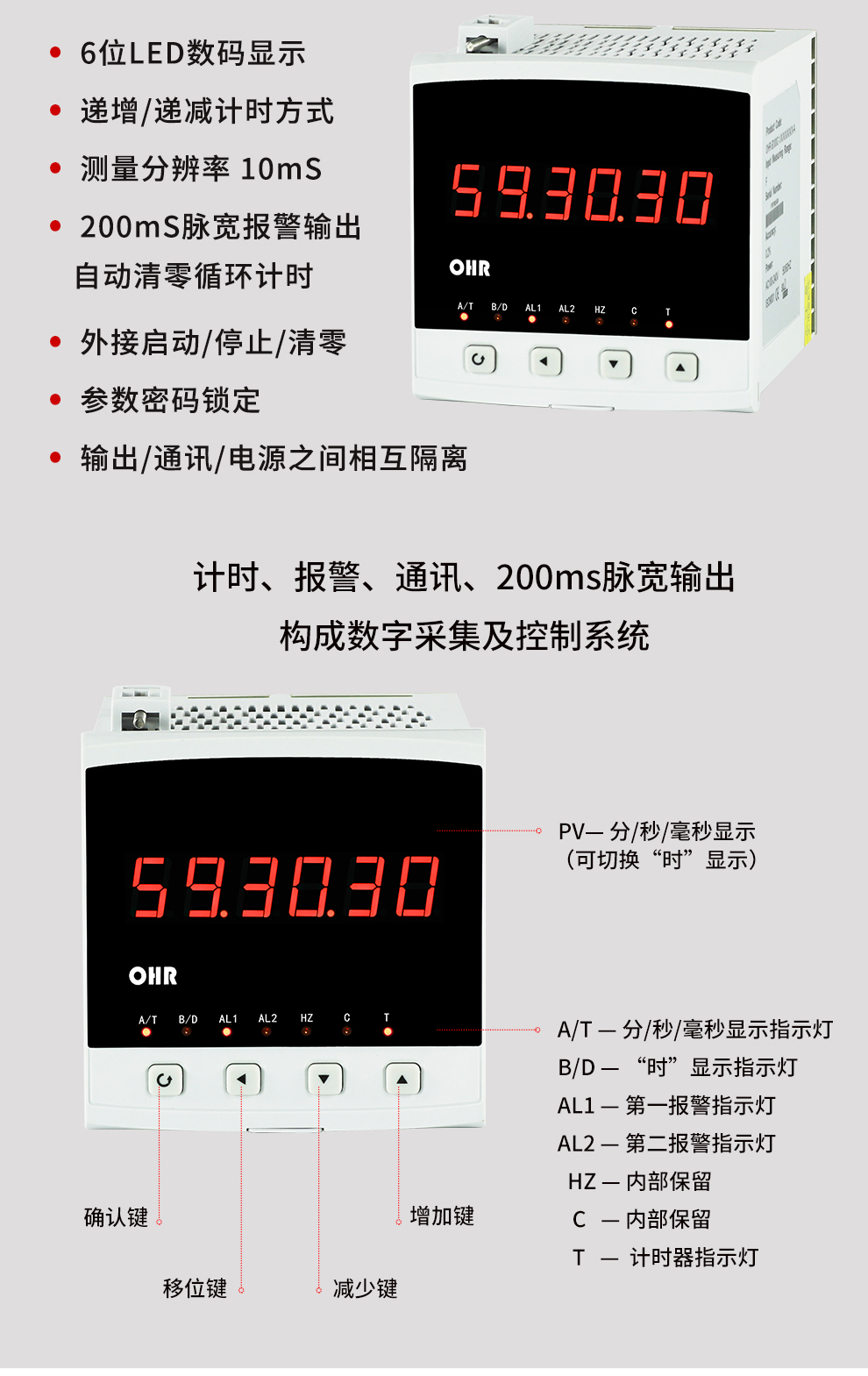 OHR-B200系列計(jì)時(shí)器采用全自動(dòng)貼片封裝工藝,具有很強(qiáng)的抗干擾能力,并具有多種輸出功能和控制功能,廣泛運(yùn)用于電力、石化、冶金、輕工、制藥、航空等諸多領(lǐng)域。