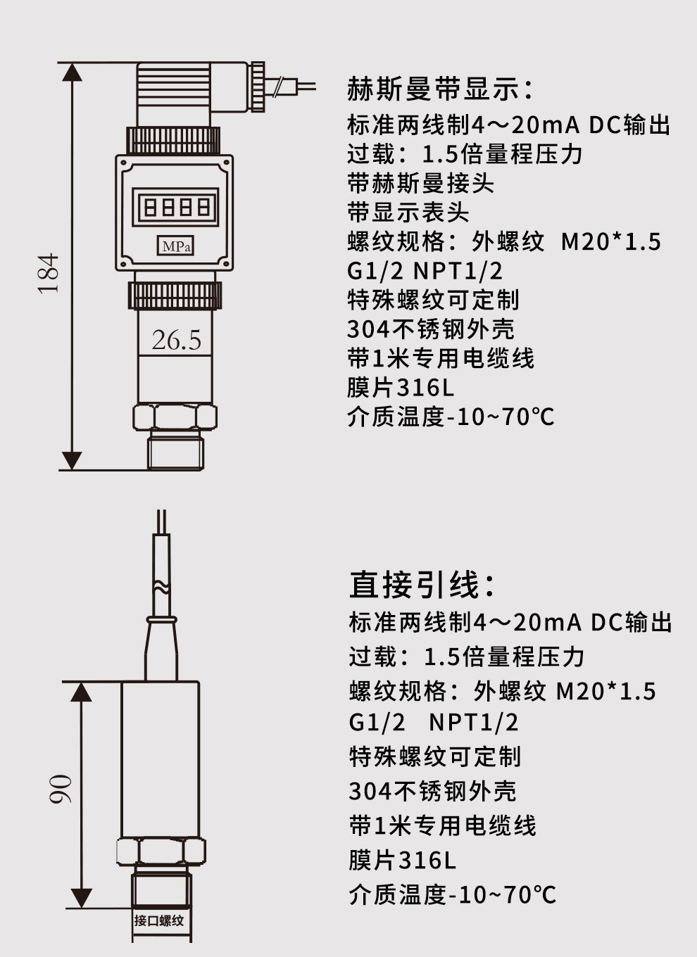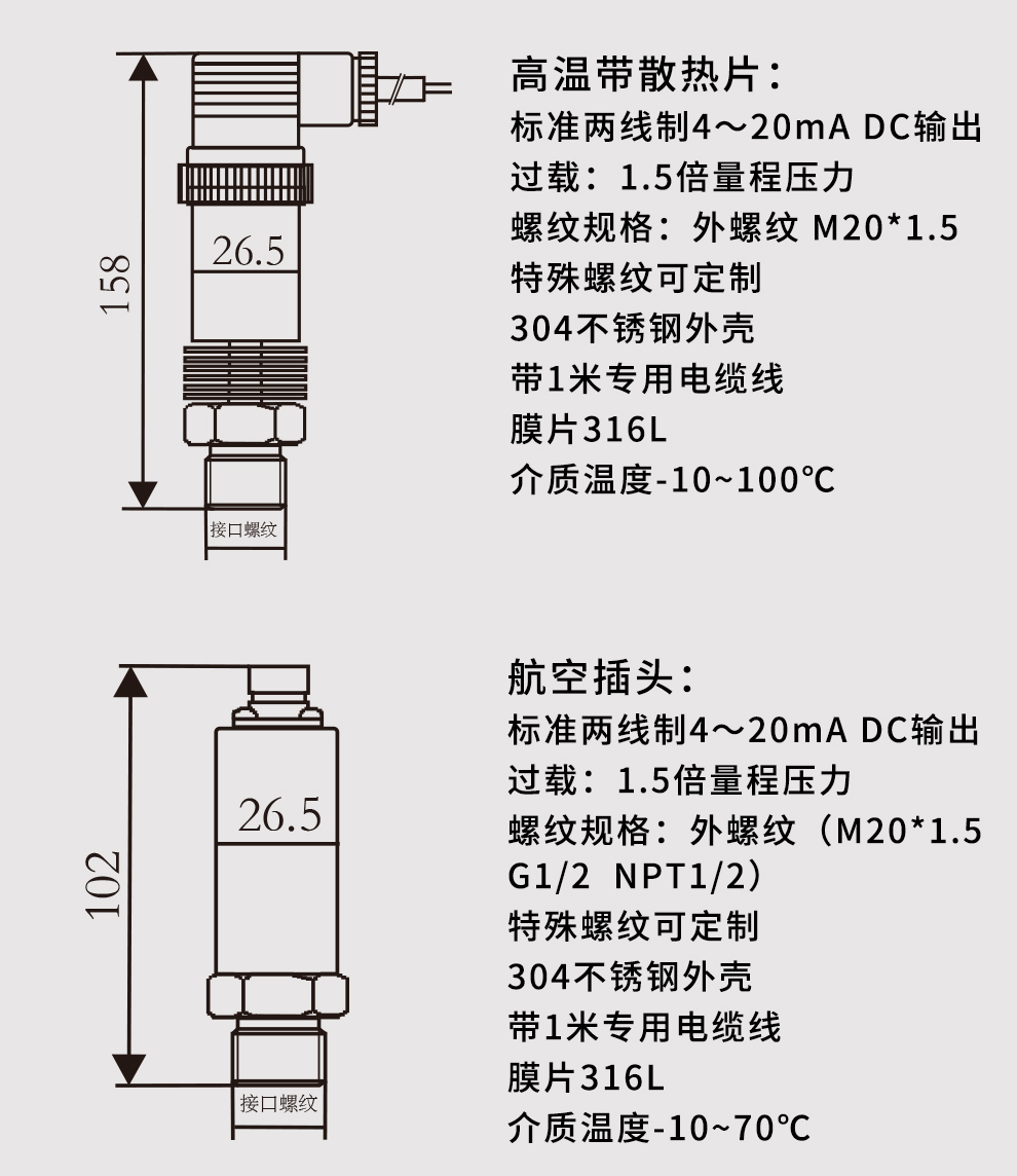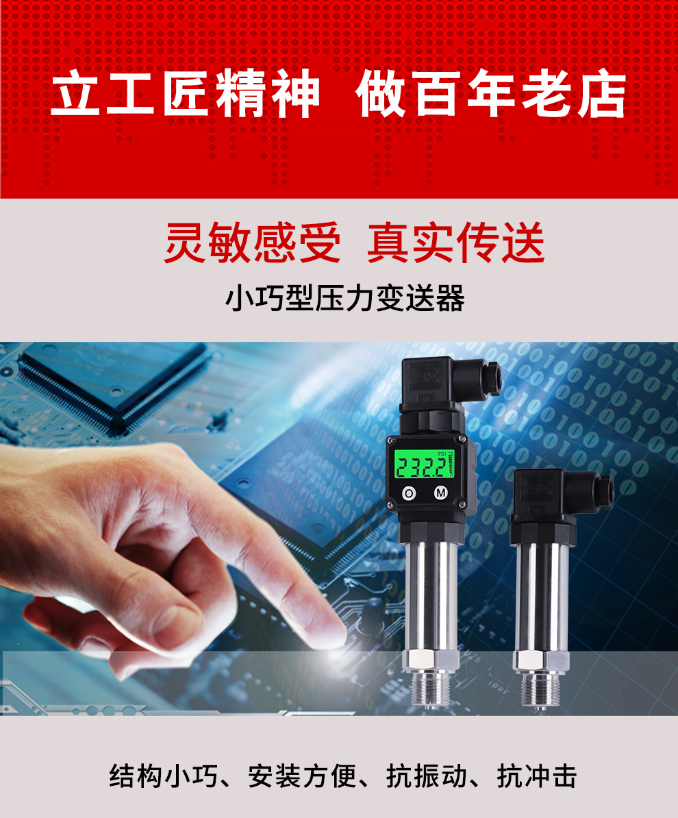 M系列小巧型壓力變送器內(nèi)部使用擴(kuò)散硅壓阻式傳感器,其結(jié)構(gòu)簡(jiǎn)單,體積小巧,易安裝;以其優(yōu)良的可靠性、適用性、靈活性和多樣性,廣泛的應(yīng)用于航空、航天、石油、化工、冶金、電力、水利等工業(yè)過程現(xiàn)場(chǎng)的壓力測(cè)量和控制。