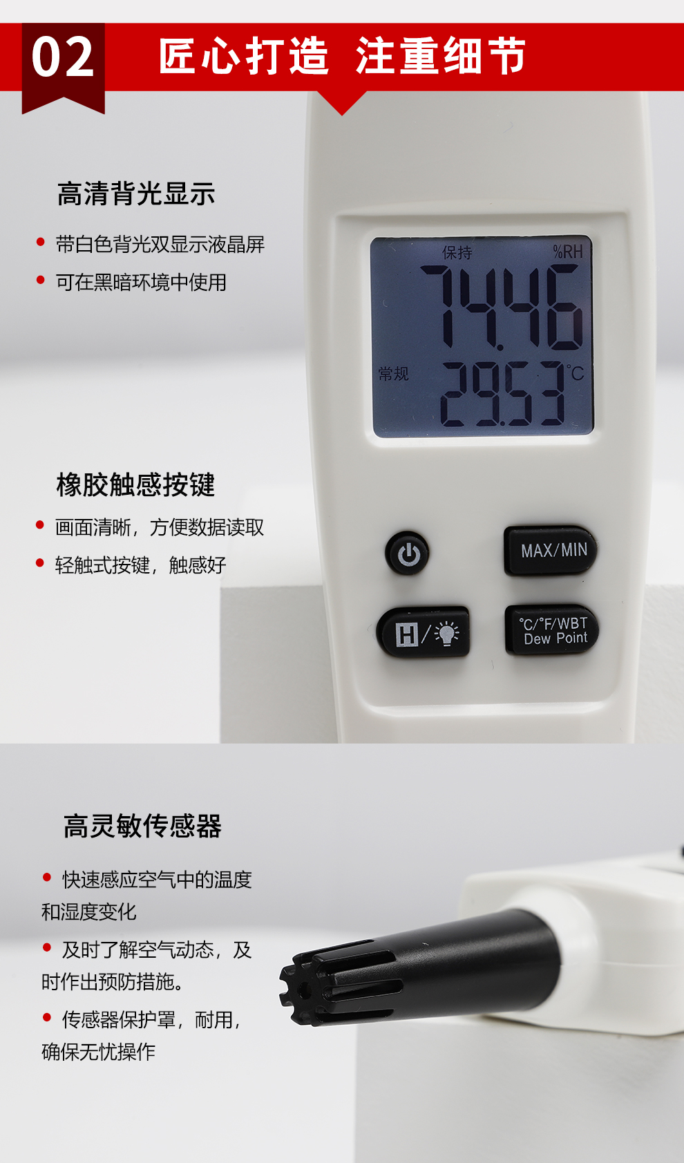 虹潤(rùn)公司是專業(yè)生產(chǎn)環(huán)境監(jiān)測(cè)儀表的國(guó)家專精特新“小巨人”企業(yè)。生產(chǎn)的手持式溫濕度檢測(cè)儀,具有測(cè)量精度高,多參數(shù)測(cè)量,最大最小值記錄,小巧便捷、低功耗省電設(shè)計(jì)等特點(diǎn)。產(chǎn)品獲得一種手持式低功耗溫濕度檢測(cè)儀、大屏幕溫濕度記錄儀等2項(xiàng)國(guó)家發(fā)明專利,主持起草物聯(lián)網(wǎng)智能溫度儀表通用技術(shù)條件、冷鏈溫度記錄儀等2項(xiàng)國(guó)家標(biāo)準(zhǔn),以及通信系統(tǒng)多通道數(shù)據(jù)采集控制終端規(guī)范軍用標(biāo)準(zhǔn),以及現(xiàn)場(chǎng)設(shè)備集成等5項(xiàng)智能制造國(guó)家標(biāo)準(zhǔn),參與國(guó)際5G標(biāo)準(zhǔn)制定,取得環(huán)境溫濕度測(cè)試儀等3項(xiàng)相關(guān)軟件著作權(quán)。產(chǎn)品廣泛應(yīng)用于實(shí)驗(yàn)室、博物館、農(nóng)業(yè)大棚、生產(chǎn)車間、倉(cāng)庫(kù)、配電機(jī)房等諸多領(lǐng)域。
