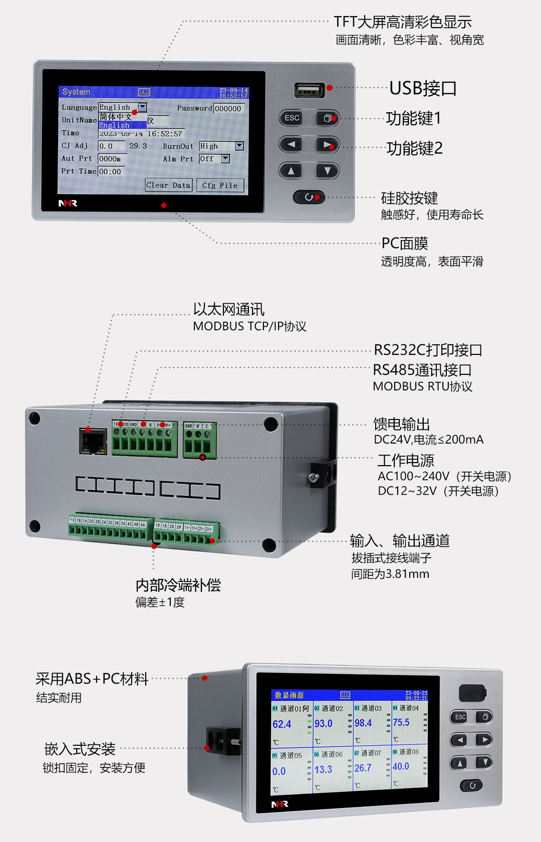 NHR-7100T系列彩色無紙記錄儀是一款體積小巧、功能強大的無紙記錄儀。采用大屏高清真彩液晶屏為顯示 窗口,使產品具有顯示清晰、色彩豐富等特點。內核采用高速、高性能32位ARM微處理器,操作簡便、響應快 ,記錄存儲與控制功能強大,是一款功能齊全、操作方便、精確可靠、高性價比的產品,在各行各業(yè)中得到廣泛 應用。
