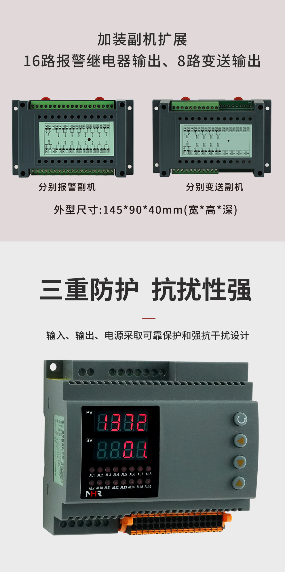 虹潤公司是專業(yè)生產(chǎn)多路溫度巡檢儀的國家專精特新“小巨人”企業(yè)。生產(chǎn)的導(dǎo)軌多路巡檢儀,具有八回路巡檢采集,全切換信號輸入,高抗電磁干擾,全隔離設(shè)計,分別報警/分別變送輸出等特點。產(chǎn)品獲得巡回檢測顯示方法及裝置以及工業(yè)模塊的導(dǎo)軌式安裝結(jié)構(gòu)等2項國家發(fā)明專利,主持起草工業(yè)過程控制系統(tǒng)用模擬輸入兩位或多位輸出儀表、物聯(lián)網(wǎng)智能溫度儀表通用技術(shù)條件等2項國家標準,以及通信系統(tǒng)多通道數(shù)據(jù)采集控制終端規(guī)范軍用標準,參與國際5G標準制定,取得巡回檢測控制儀等3項相關(guān)軟件著作權(quán)。產(chǎn)品廣泛應(yīng)用于石化、冶金、電力、食品、制藥、水處理、實驗室等諸多領(lǐng)域。