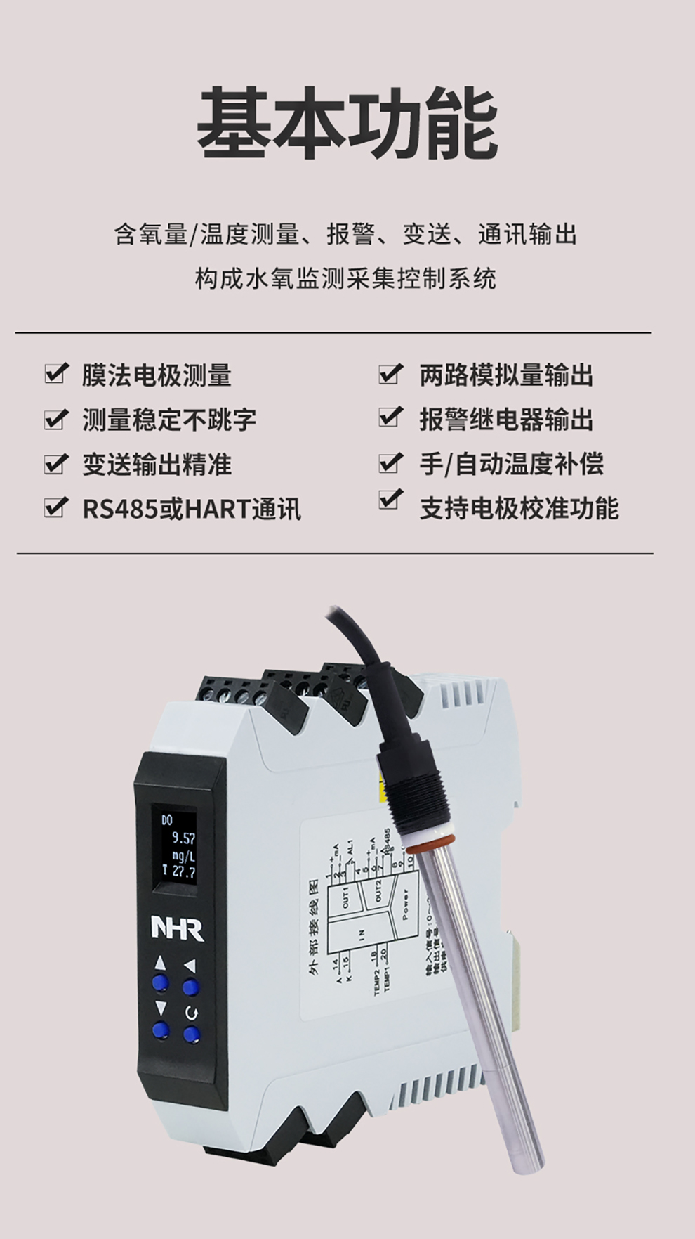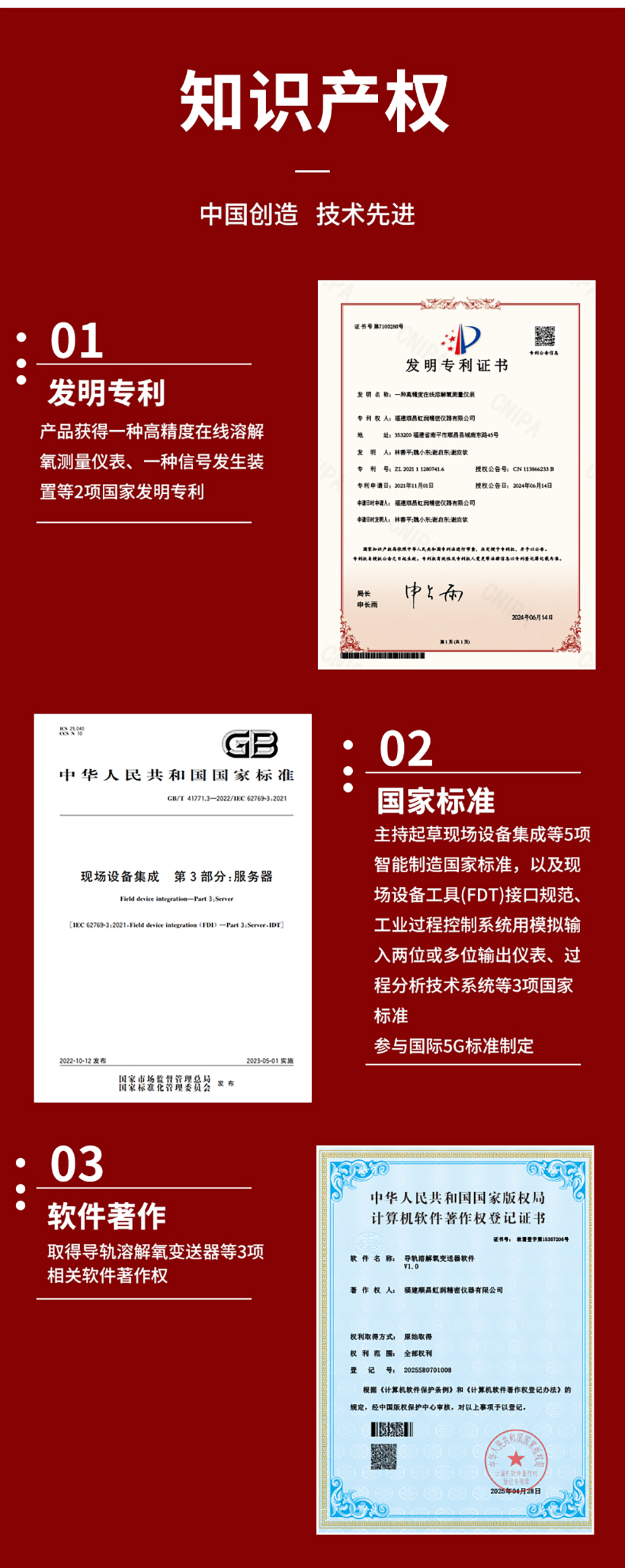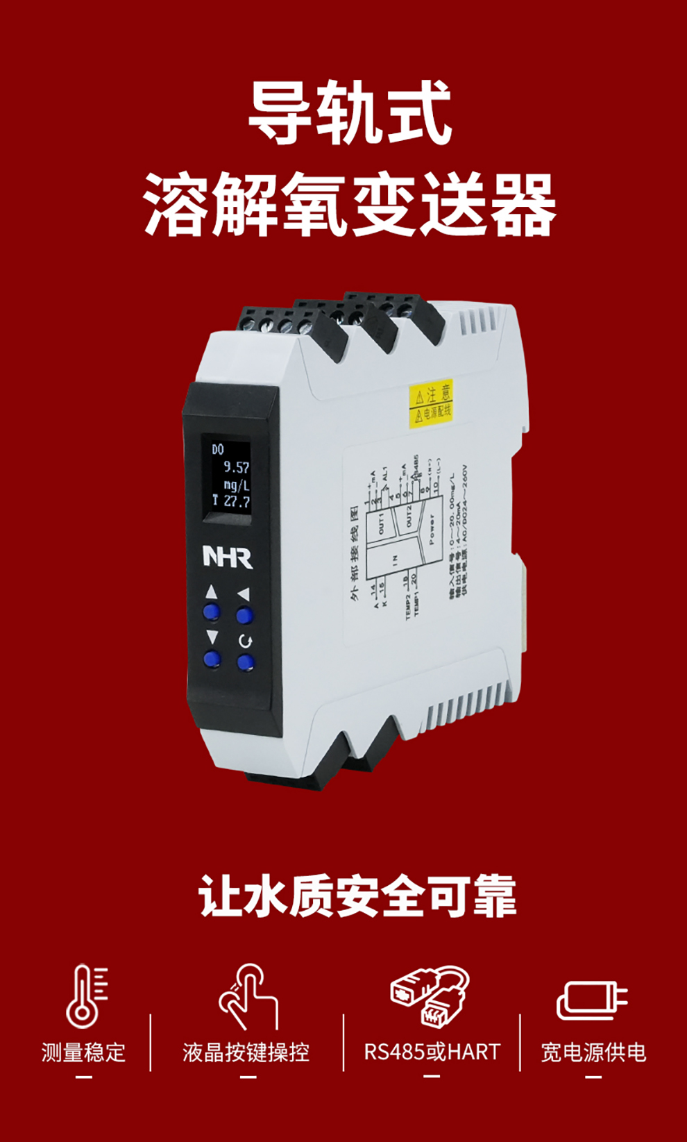 虹潤公司是專業(yè)生產(chǎn)水質(zhì)分析儀的國家專精特新“小巨人”企業(yè)。生產(chǎn)的導(dǎo)軌式溶解氧變送器,具有測量穩(wěn)定不跳字,液晶顯示按鍵操控,變送輸出精準(zhǔn),寬范圍電源供電,RS485或HART通訊等特點。產(chǎn)品獲得一種高精度在線溶解氧測量儀表、智能化控制器、一種信號發(fā)生裝置等3項國家發(fā)明專利;主持起草現(xiàn)場設(shè)備集成等5項智能制造國家標(biāo)準(zhǔn),以及現(xiàn)場設(shè)備工具(FDT)接口規(guī)范、工業(yè)過程控制系統(tǒng)用模擬輸入兩位或多位輸出儀表、過程分析技術(shù)系統(tǒng)等3項國家標(biāo)準(zhǔn);參與國際5G標(biāo)準(zhǔn)制定,取得導(dǎo)軌溶解氧變送器等3項相關(guān)軟件著作權(quán)。產(chǎn)品廣泛應(yīng)用于實驗室、水處理、環(huán)境監(jiān)測、制藥、食品、農(nóng)業(yè)、工業(yè)流程控制等諸多領(lǐng)域。