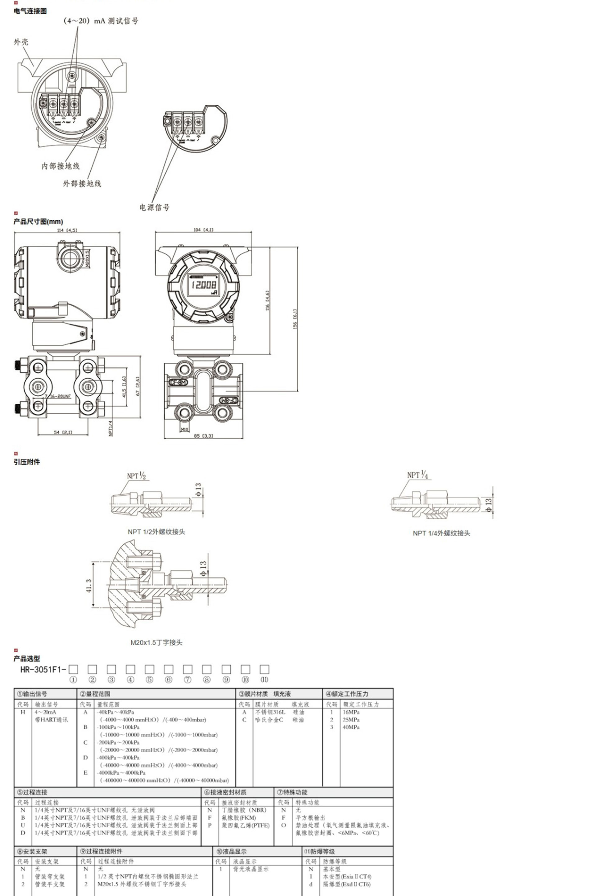 HR-3051F1智能單晶硅差壓變送器能準(zhǔn)確的測(cè)量差壓,并把它轉(zhuǎn)換成4~20mADC的輸出信號(hào)。該變送器可通過三按鍵本地操作,或通用手操器、組態(tài)軟件、以及手機(jī)APP遠(yuǎn)程操作,在不影響4~20mA DC的輸出信號(hào)的同時(shí),進(jìn)行顯示與組態(tài)。